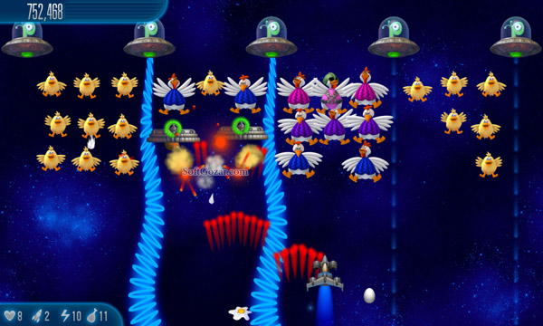 در این نسخه از بازی Chicken Invaders با روند اکشن تیراندازی خاص و جالبی روبرو خواهیم بود. در گیمپلی جذاب و سرگرمکنندهی این بازی یک هواپیمای جنگندهی فانتزی را کنترل میکنید که هدفی جز تیراندازی به مرغان مهاجم، رئیسهای غولپیکر و دیگر دشمنان و در نتیجه نابودی آنها ندارد. با نابودی مرغها و دیگر عناصر جاری در صحنه، امتیازاتی آزاد می شوند که دستیابی به آنها قدرتهای بیشتر و جذابتری به شما میدهند. روند بازی در فضایی کهکشانی جریان دارد و در 12 محیط فرازمینی موجود میتوان به سلاحها و تیرهای قابل ارتقای متنوع و نیز 30 پاداش منحصر بفرد و 15 مدال و بسیاری آیتمهای سرگرمکنندهی دیگر دست یافت.