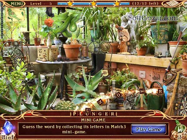 در این بازی کمحجم معمایی -همانطور که از نامش پیداست- با یافتن اشیاء پنهان سروکار دارید اما تفاوت این بازی آن با دیگر بازیهای مشابه در اینجاست که گیمپلی آن با دو روند جالب ترکیب شده به این صورت که گیم پلی هم میتواند بصورت کلمات متقاطع (حروفچین) جریان داشته باشد و هم یافتن شیء بصورت سنتی. بدینترتیب هم میتوان اشیاء را بر روی صحنه پیدا کرد یا با استفاده از کیبورد نام آنها را در محیط مربوطه وارد نمود. در متن بازی انواع جالبی از مینیگیمها وجود دارند که میتوان با کسب مهارتهای بیشتر، مراحل مخفی جالب دیگری را نیز بازگشایی کرد.