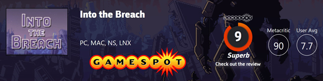 Into the Breach یک بازی در ژانر استراتژیک نوبتی و تاکتیکی (Turn-Based, Strategy, Tactical) است؛ این بازیِ ارزشمند، بسیار موردتوجه گیمران علاقهمند به این ژانر بازیها قرار گرفته و از جانب منتقدان مختلف بازیهای کامپیوتری نیز بسیار تحسینشده است. Into the Breach امتیازات بسیار بالایی را منتقدان مراجع معتبر بررسی بازیها دریافت کرده است و یکی از بهترین بازیهای سال در این ژانر محسوب میشود. این بازی، محصولی دیگر از سازندگان بازی معروف و پُرامتیاز FTL: Faster Than Light است. دوران بازی، آیندهای بسیار دور است؛ سیارهٔ زمین، از موجودات غولپیکر بسیار شرور و خطرناک فضایی پُر شده و تنها راه نجات انسانها، نبردی همتراز و تماماً مسلحانه با آنهاست. محیط اولیه در بازی، بهصورت تصادفی ایجاد میشود و قدم به قدم با چالشهای به وجود آمده – به قصد غلبهٔ قاطعانه بر آنها – همراه خواهید شد. برای غلبهٔ همهجانبه بر دشمنان، خودتان نیز باید از رباتهای جنگی بزرگ و قدرتمند استفاده کنید، که این نیز خود چالشی بزرگ و گسترده است. گیمپلی بازی Into the Breach برخلاف حجم کم آن، بسیار وسیع و پُرمایه است. از جمله فعالیتهای مهم در بازی، میتوان به استفاده از سازهها برای تأمین نیروی رباتهای جنگی خود، جابهجایی در زمان، پیدا کردن سلاحهای قدرتمند جدید همچنین بهرهگیری از خلبانان فوقالعاده ماهر اشاره کرد.ة