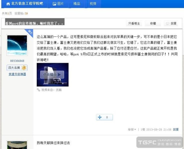 بنا به تصویری از یک پست حذف شده در انجمن IGN ، کارکنان کمپانی فاکسکان در شهر «یانتای» چین به عمد و در اعتراض به شرایط بد کاری، کنسولهای پلیاستیشن 4 را خراب کردهاند.