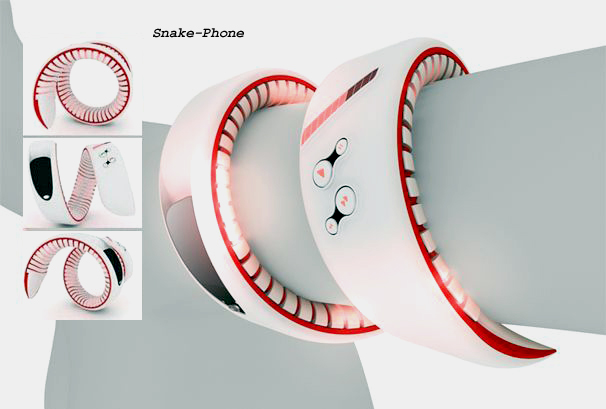 * گوشي Snake داشتن تلفني كه به دور مچ دست يا بازو پيچيده مي‌شود، مفيد خواهد بود، به‌ويژه براي كساني كه اغلب وسايل خود را گم مي‌كنند. گوشي Snake Phone توسط Product Visionaires طراحي شده است.